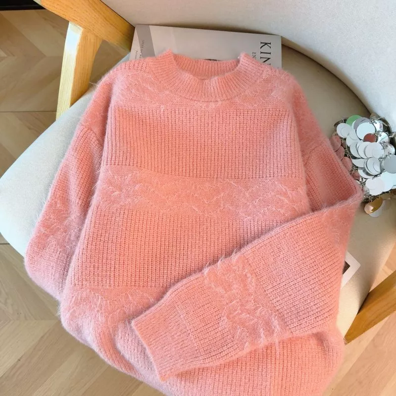 Maglione Morbido A Treccia Vestibilità Comoda Colore Rosa Pesca 60892