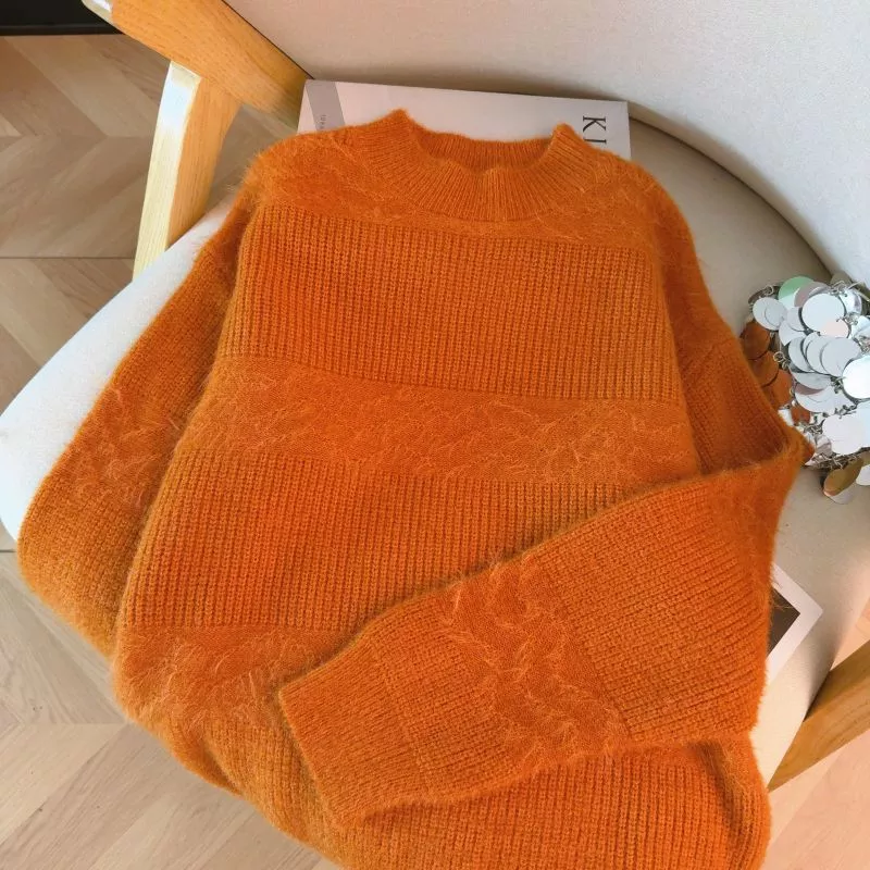 Maglione Morbido A Treccia Vestibilità Comoda Colore Arancio Zucca 60892