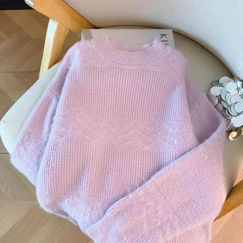 Maglione Morbido A Treccia Vestibilità Comoda Colore Lilla Chiaro 60892
