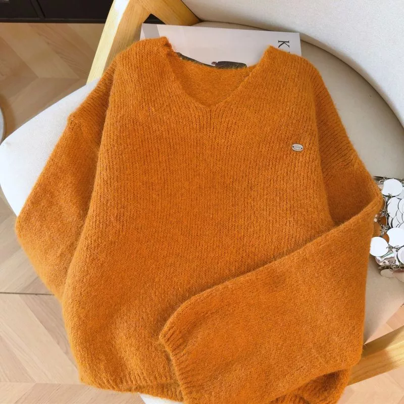 Maglione Morbido A V Scollo Profondo Arancia Invernale Effetto Caldo CF60900
