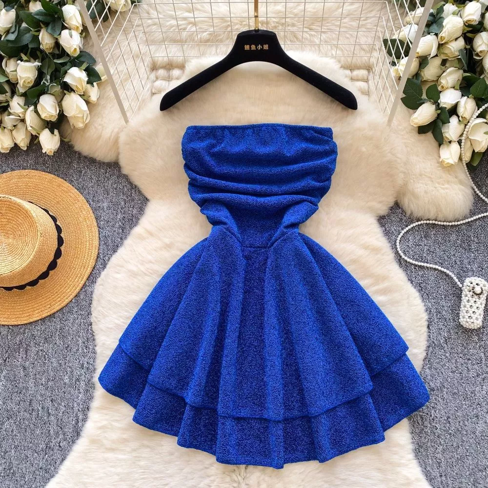 Abito Mini A Fascia Donna Blu In Maglia Elasticizzata Linea Svasata CF64925