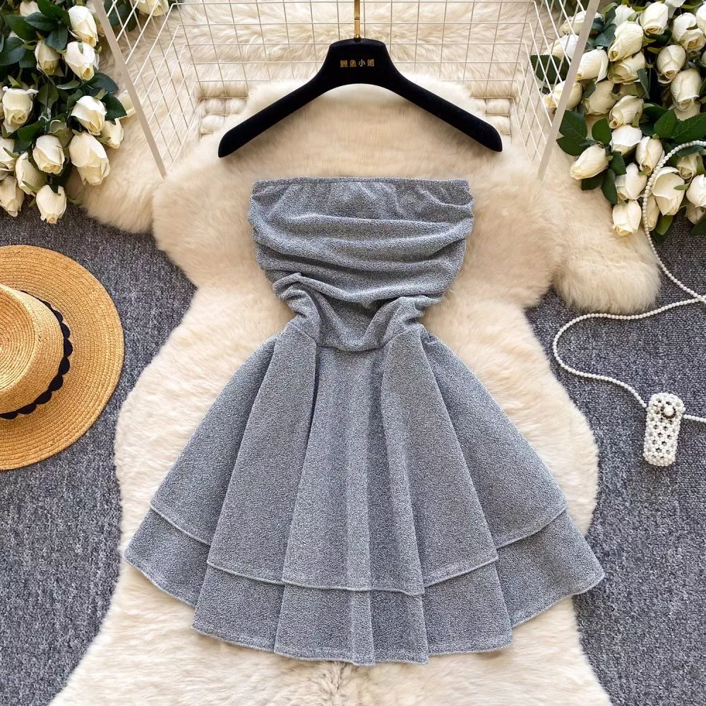 Vestito Mini Donna Grigio A Fascia In Maglia Svasato Elegante CF64925