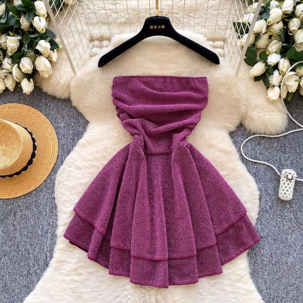 Abito Mini A Fascia Donna Viola In Maglia Elasticizzata Linea Svasata CF64925