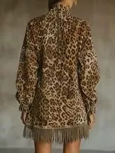 Mini abito da donna dal carattere deciso e sofisticato, impreziosito da stampa leopardata e frange decorative sull’orlo che donano movimento e personalità al look. La linea strutturata valorizza la figura mantenendo una vestibilità femminile ed equilibrata. Il design è pensato per outfit eleganti e contemporanei, perfetto per eventi serali, cene, aperitivi o occasioni in cui distinguersi con stile. Un capo che unisce impatto visivo e cura dei dettagli, facile da abbinare a stivali, décolleté o accessori minimal.