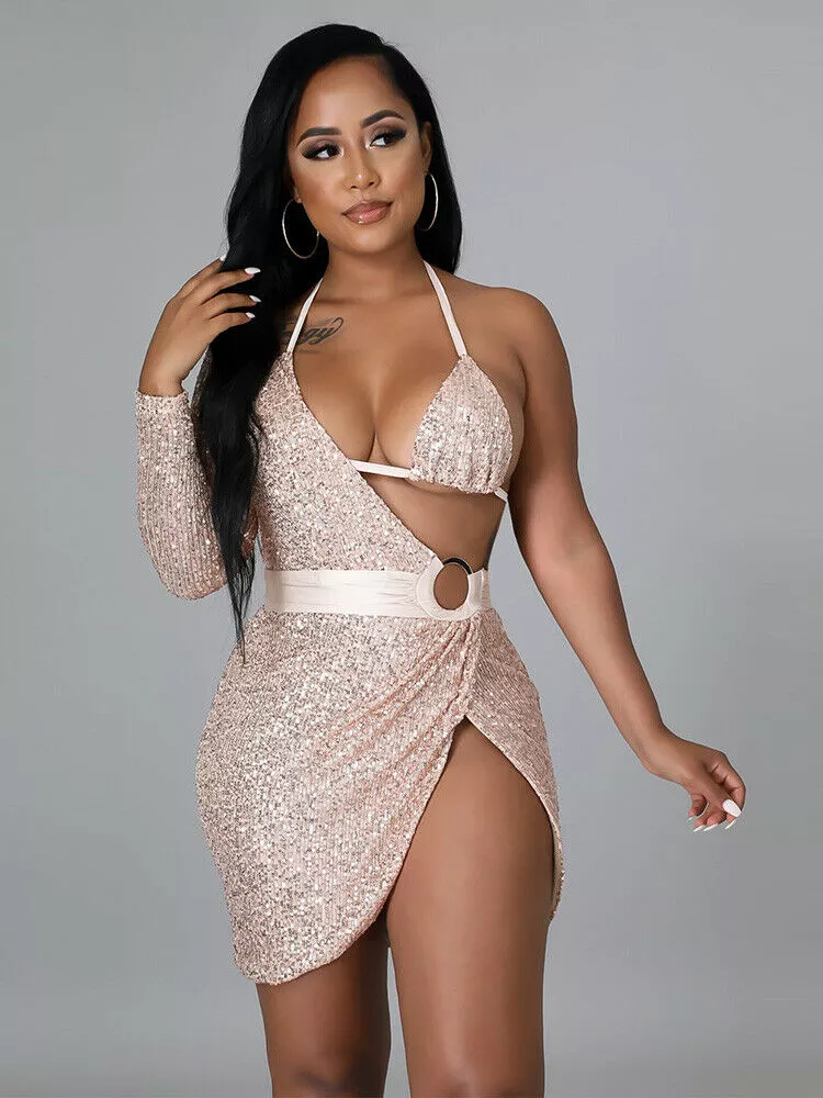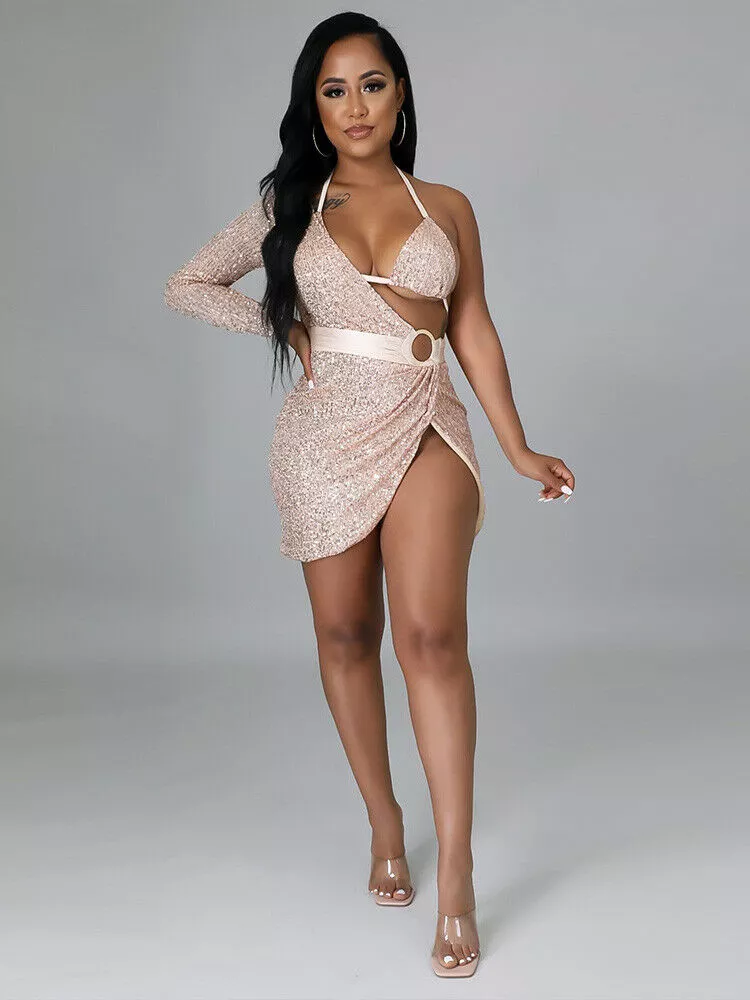 Mini abito donna sexy vestito corto tubino rosa monospalla strass sera A221
