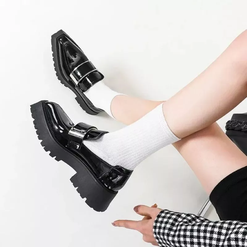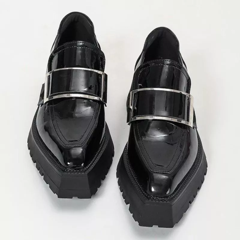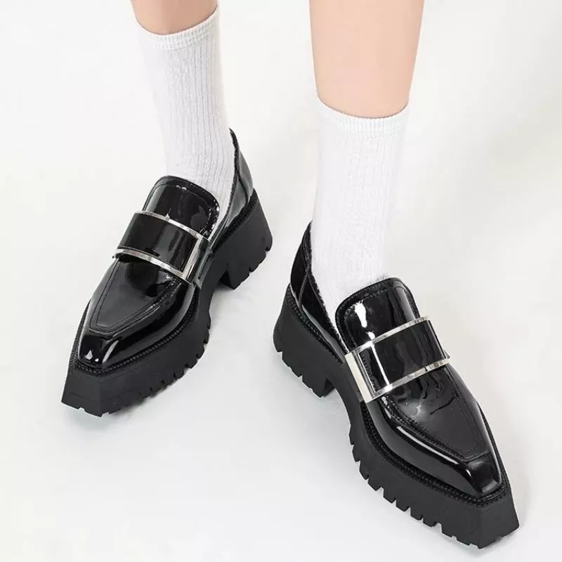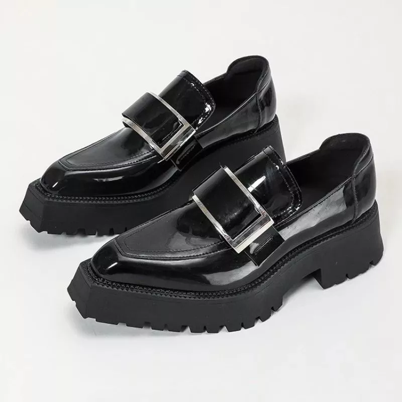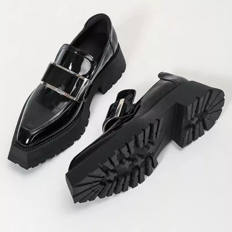 Mocassini Platform Nero Vernice Donna Suola Alta Carrarmato Stile Moderno CF4P7