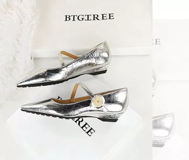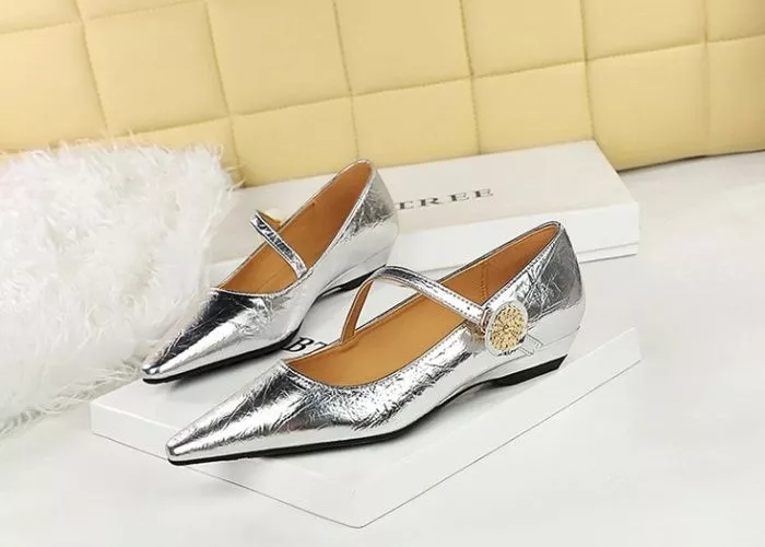 Mocassini Scarpe Ballerine Comode Mocassini Argento Lucido Pelle Sintetica 27384