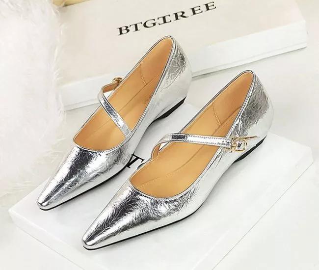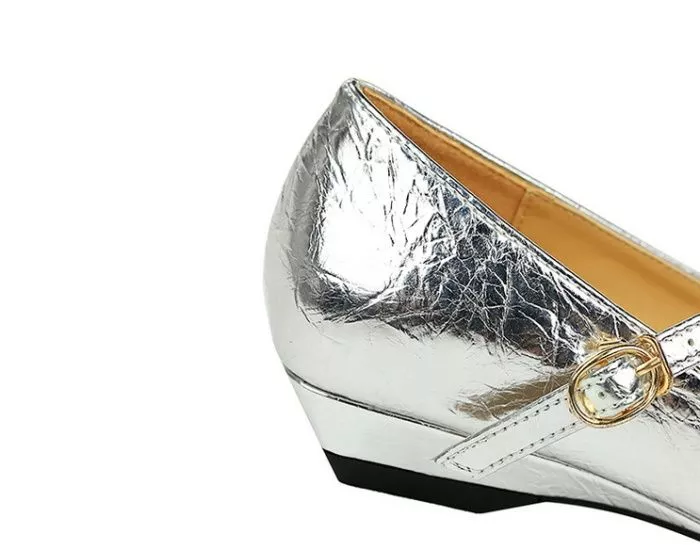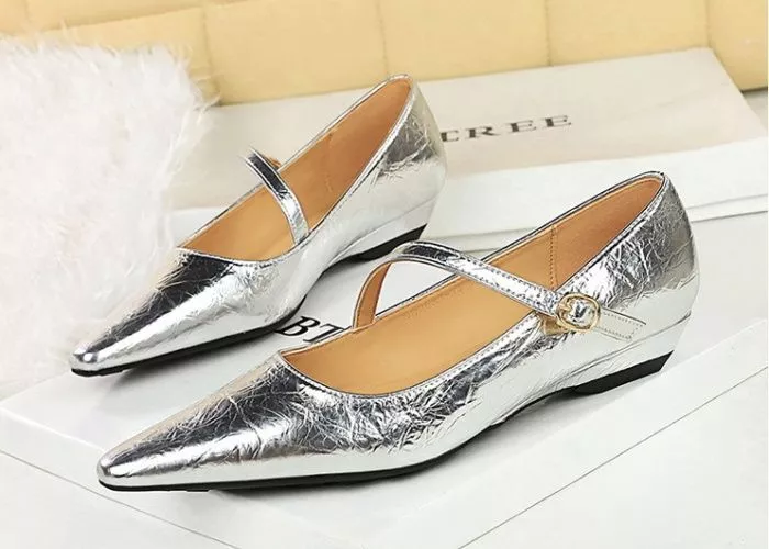 Mocassini Scarpe Ballerine Mocassini Argento Lucido Pelle Sintetica 31078