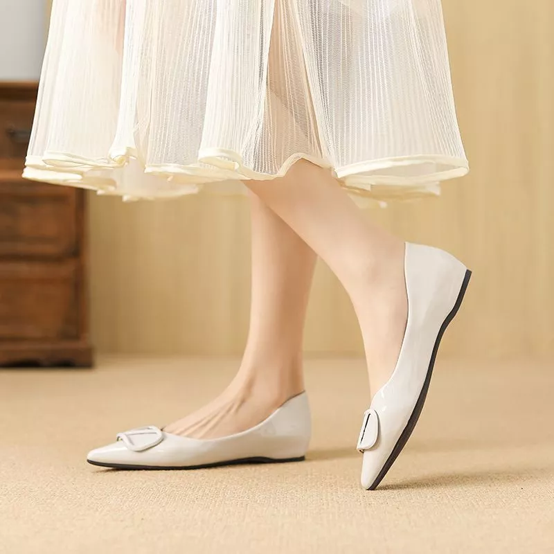 Mocassini Scarpe Ballerine Mocassini Bianco Lucido Pelle Sintetica 33485