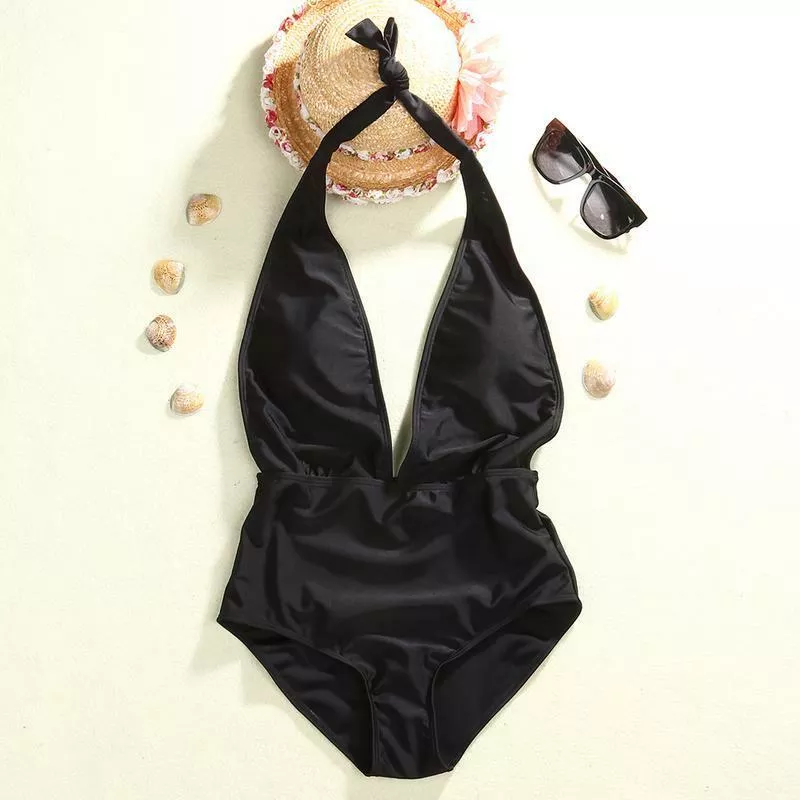 moda mare costume intero monokini donna elegante nero scollato elegante tg XL