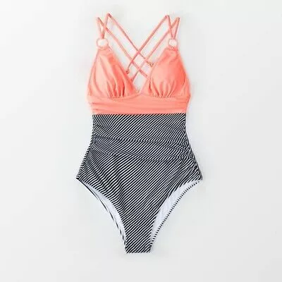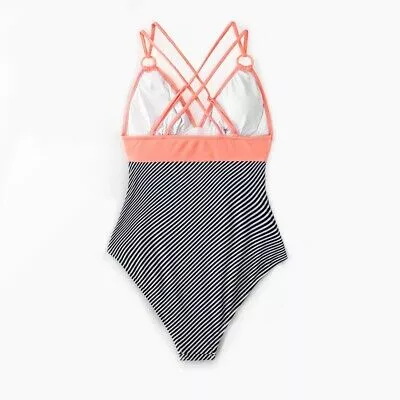moda mare costume intero monokini donna elegante sgambato nero rosa J258
