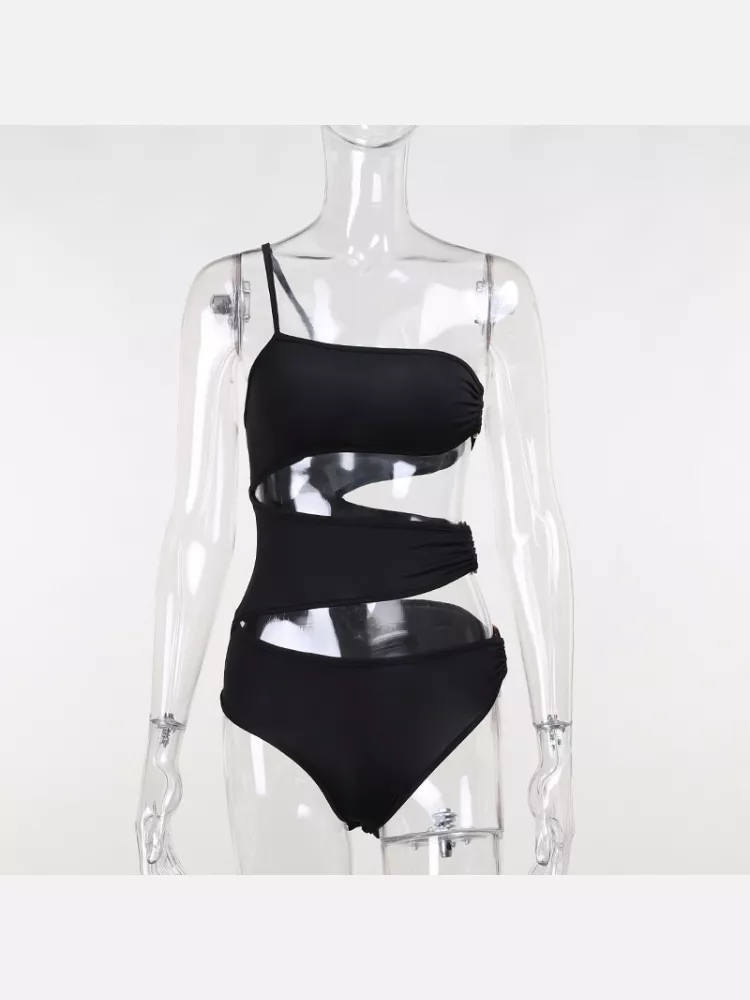 moda mare costume intero monokini donna sgambato nero fascia slim 30352