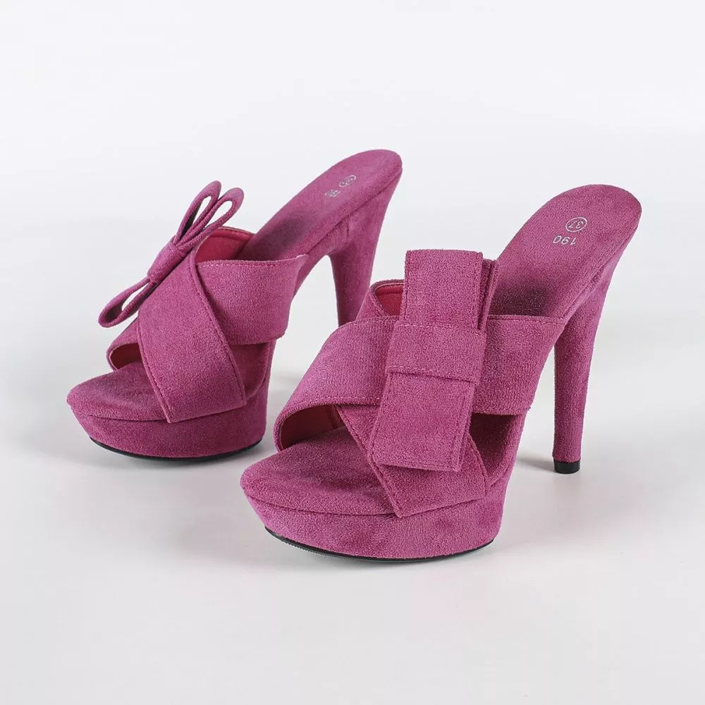Mules Rosa Con Fiocco E Plateau Eleganti Tacco A Spillo Da Sera CF53729