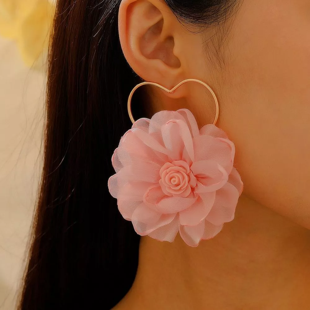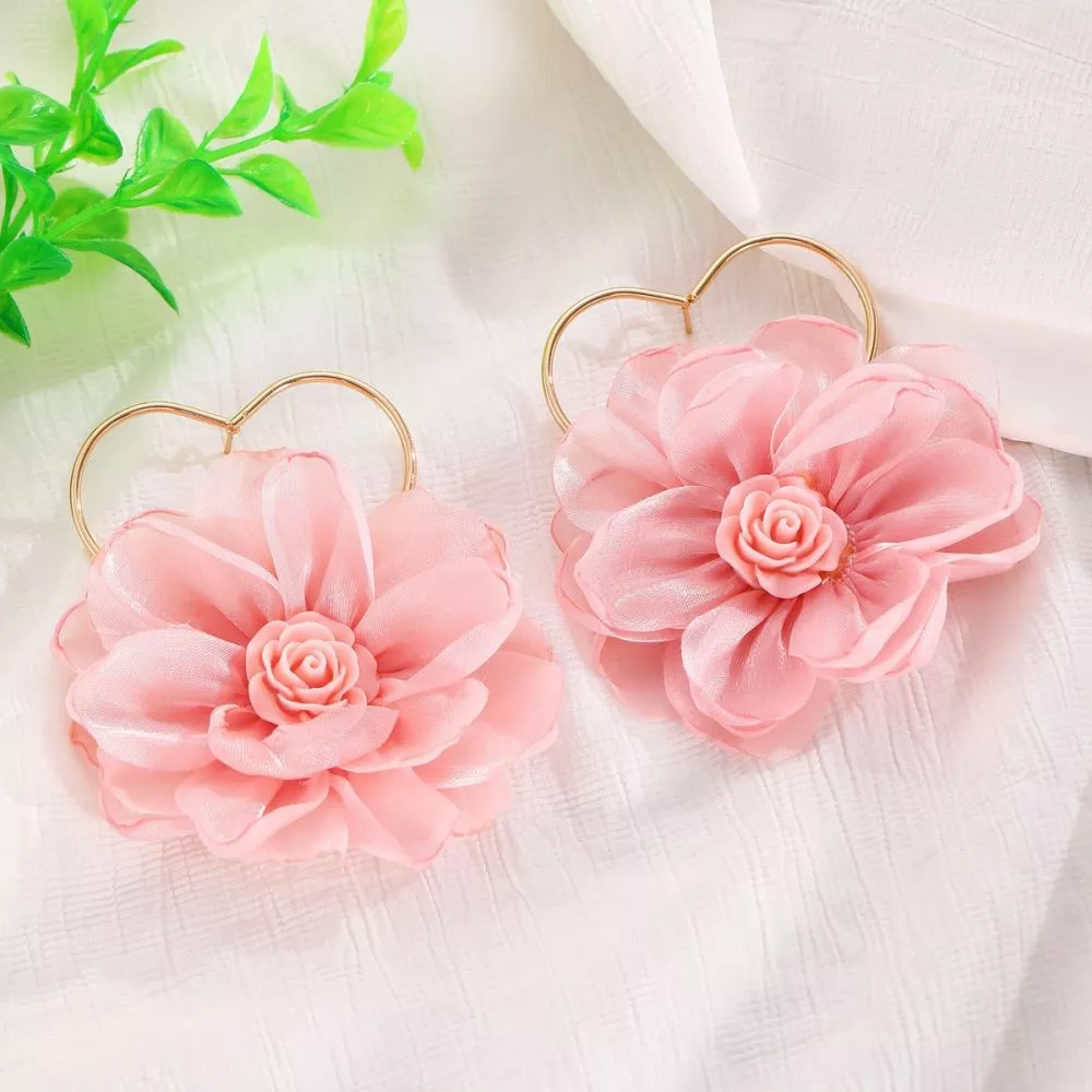 Orecchini Cerchio Cuore Fiore Rosa Grandi Pendenti Estate Moda CF50325