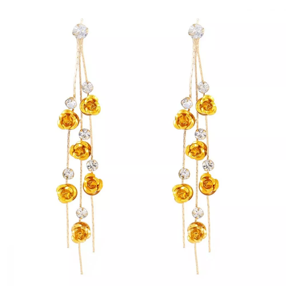 Orecchini Lunghi Rose Pendenti Oro Eleganti Brillanti Cerimonia CF50323
