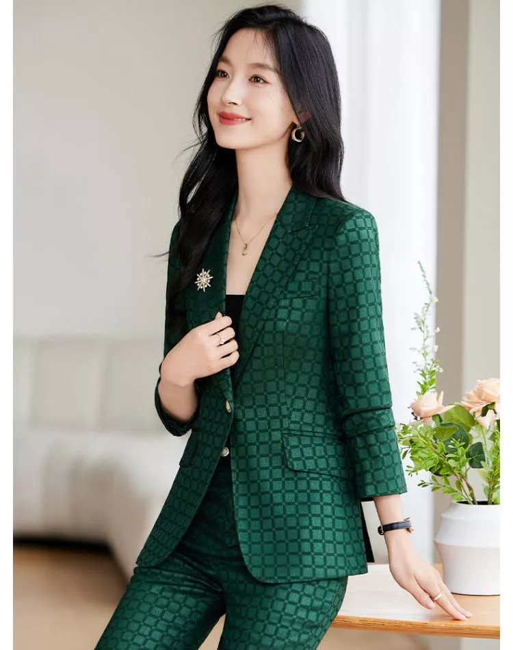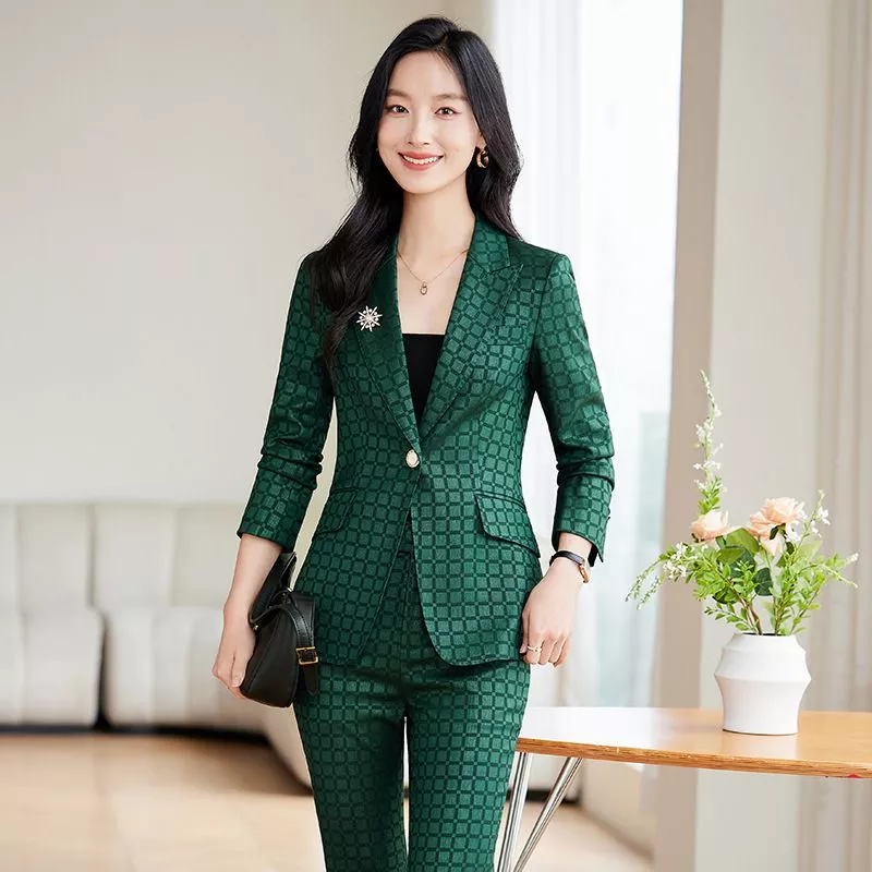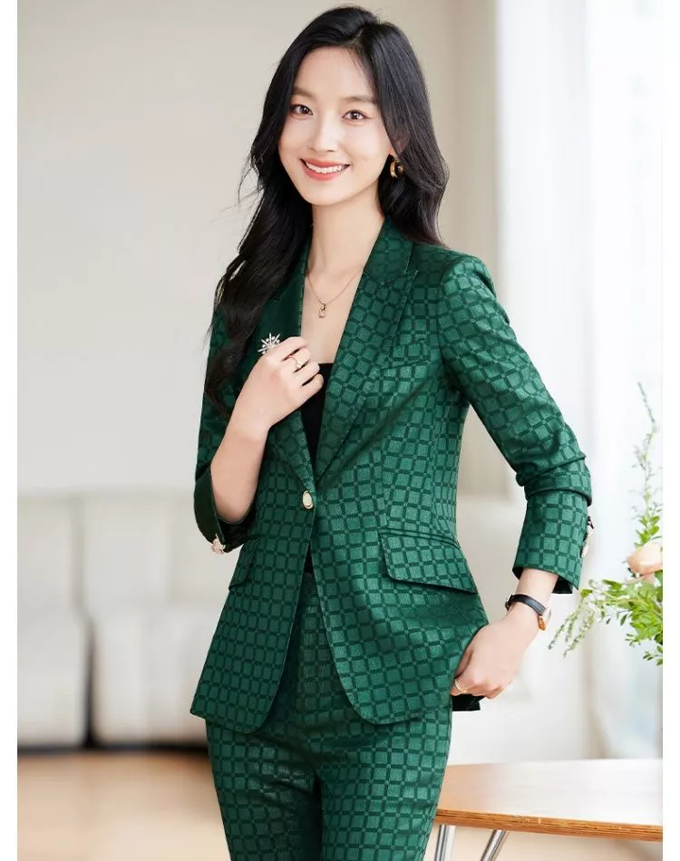 Outfit Donna Verde Slim Elegante Giacca Monopetto E Pantalone A Zampa CF54414