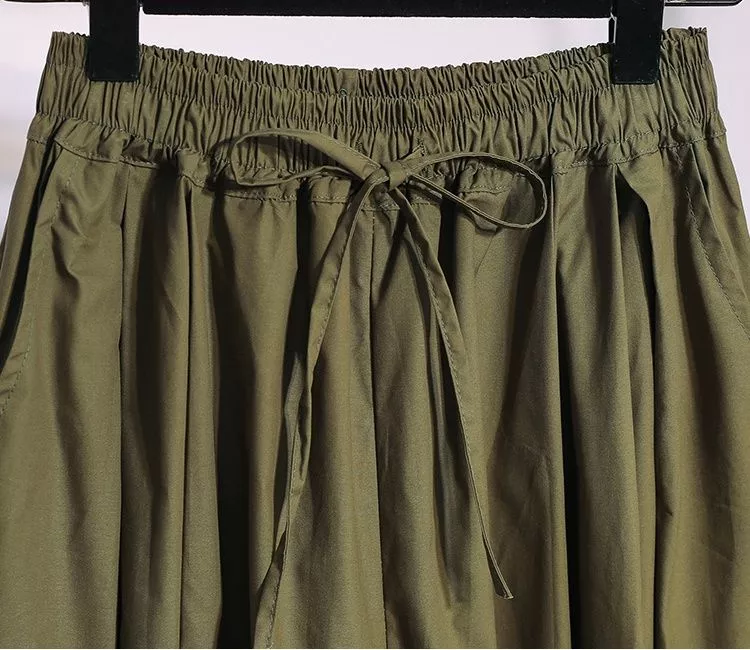 Pantaloni Donna Gamba Larga Vita Alta Con Laccio Verde Oliva CF67860