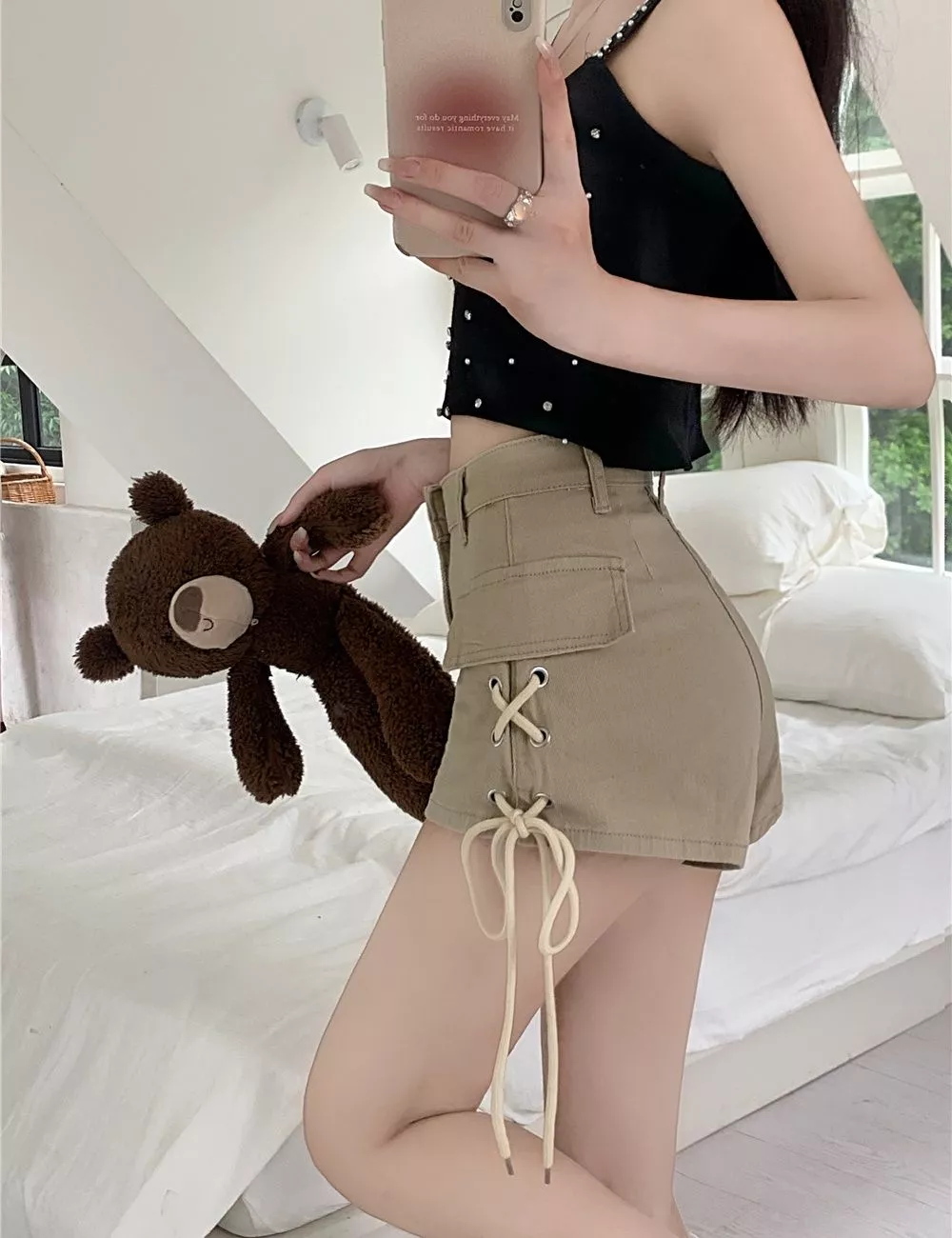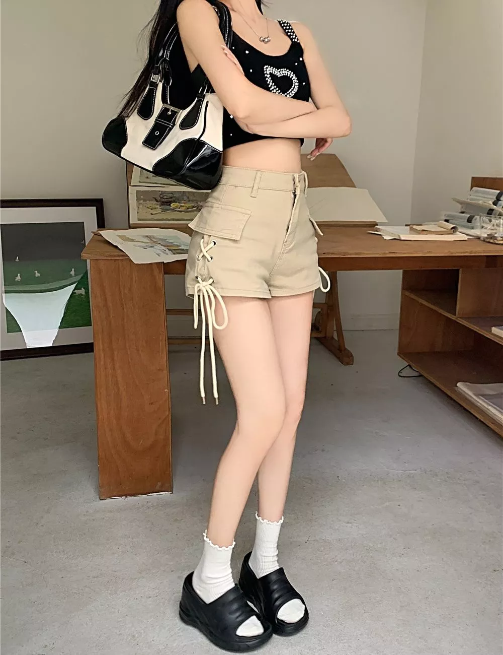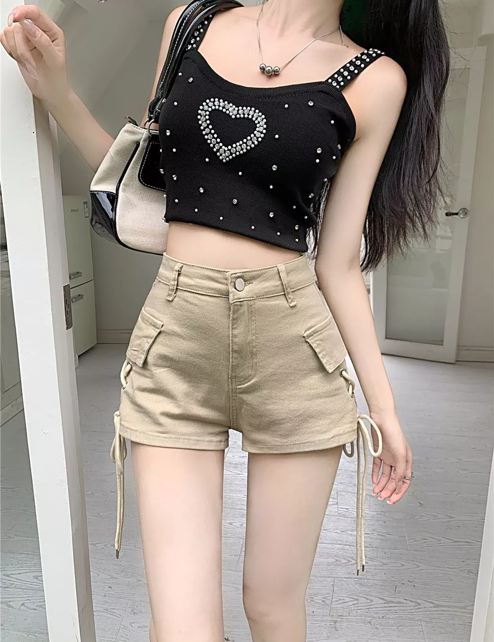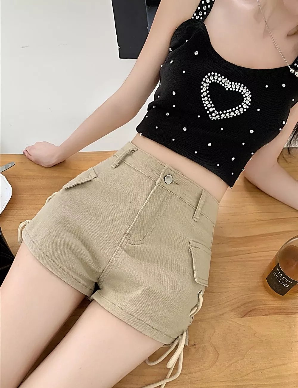 Pantaloni Donna Jeans Corti Short Blu Stretti Tasche Denim Beige Slim 01956