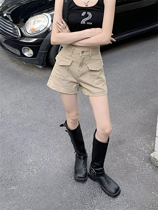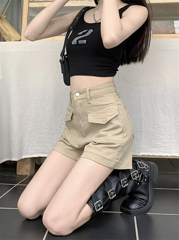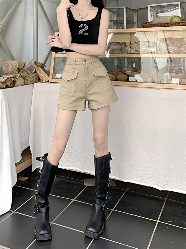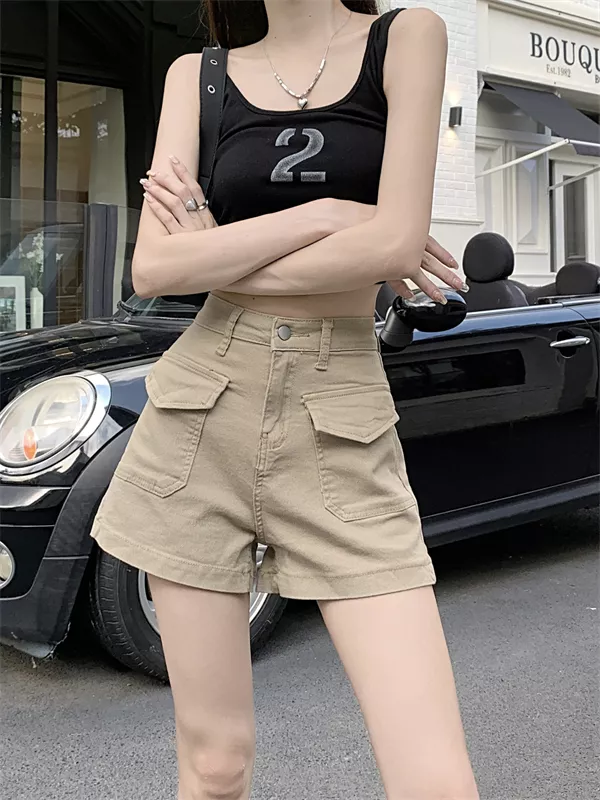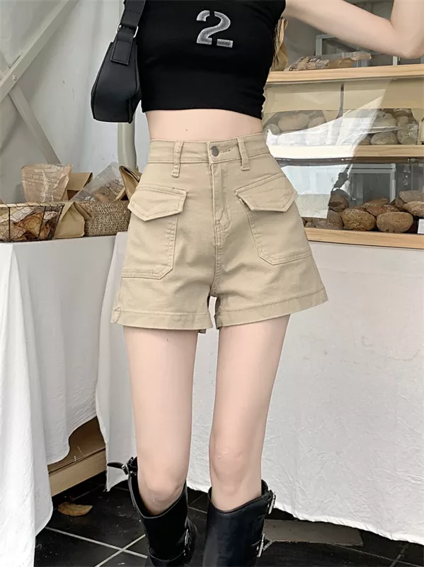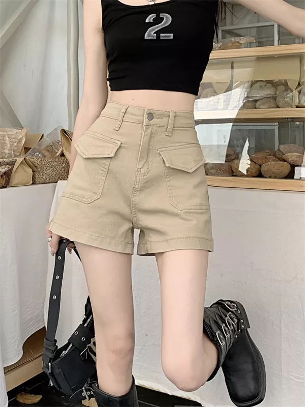 Pantaloni Donna Jeans Corti Short Denim Beige Safari Cachi Comodi 67163