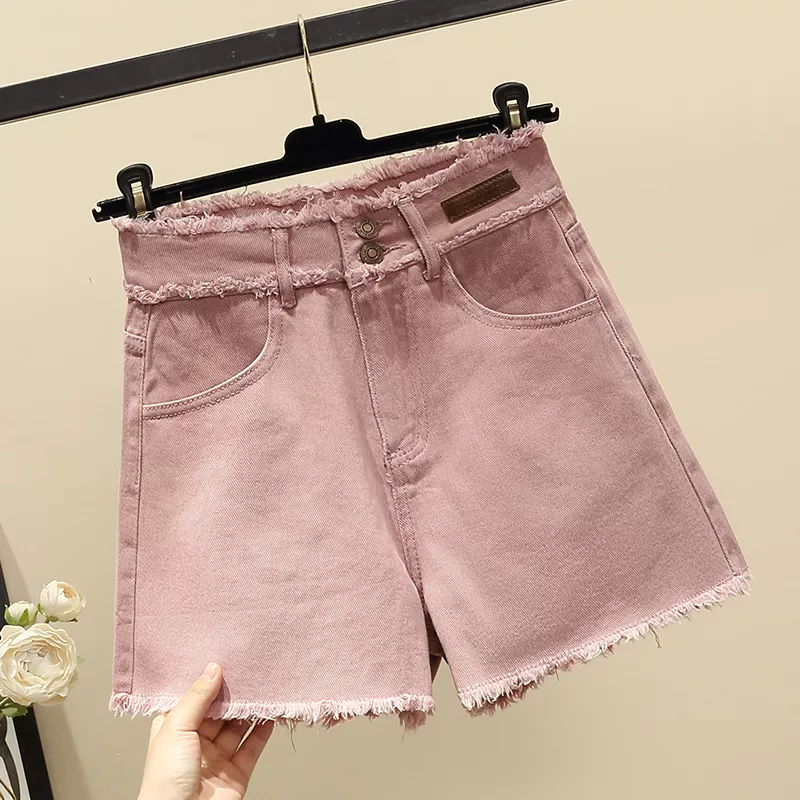 Pantaloni Donna Jeans Corti Short Denim Rosa Comodi Slim 70112
