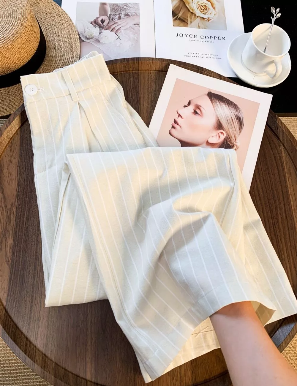 Le linee verticali tono su tono slanciano visivamente la figura mentre il taglio ampio e fluido garantisce comfort e vestibilità armoniosa. Ideali per outfit estivi eleganti, cerimonia giorno o look minimal sofisticati.