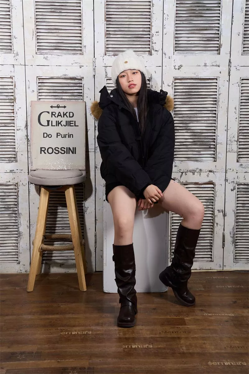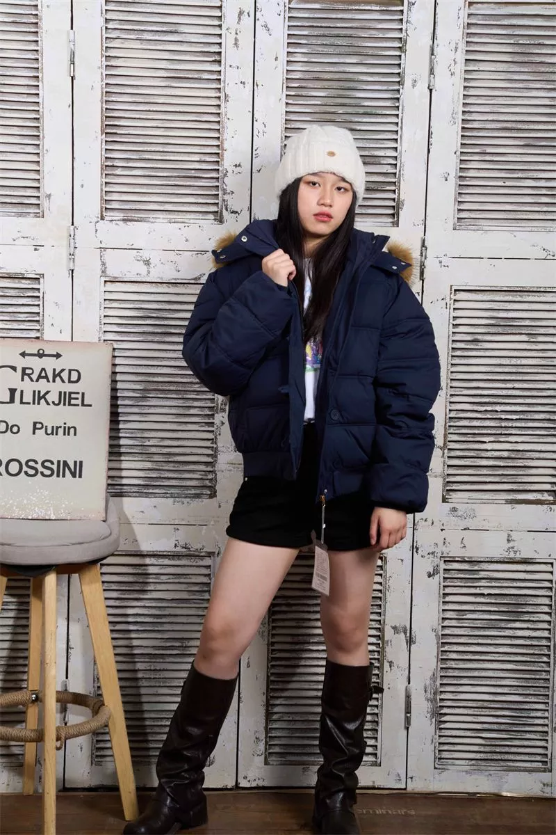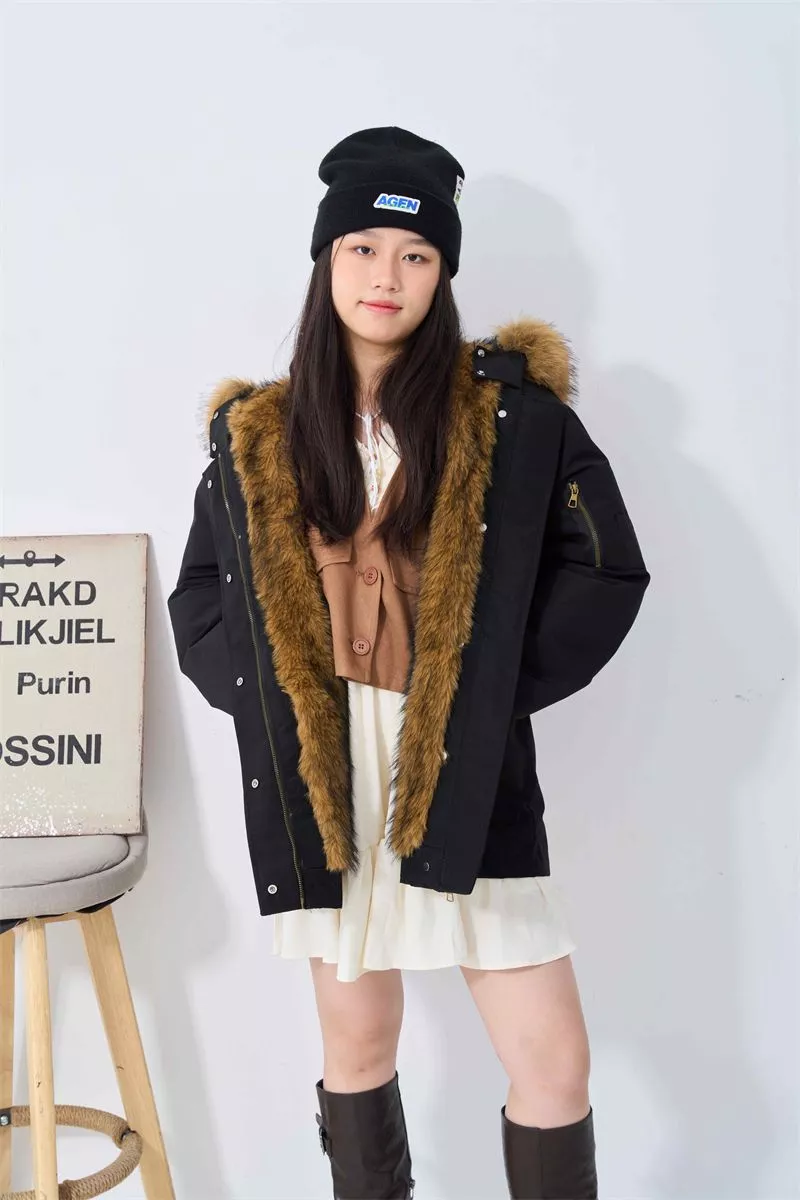 Piumino Corto Nero Con Cappuccio E Bordo In Pelliccia Caldo Invernale CF57093