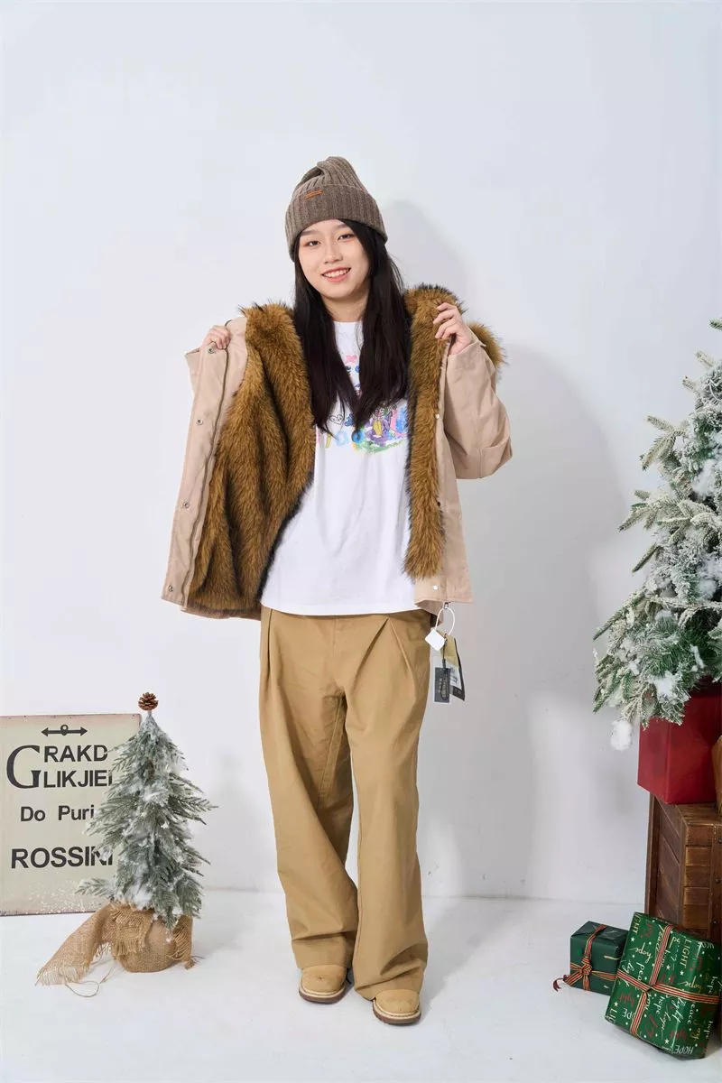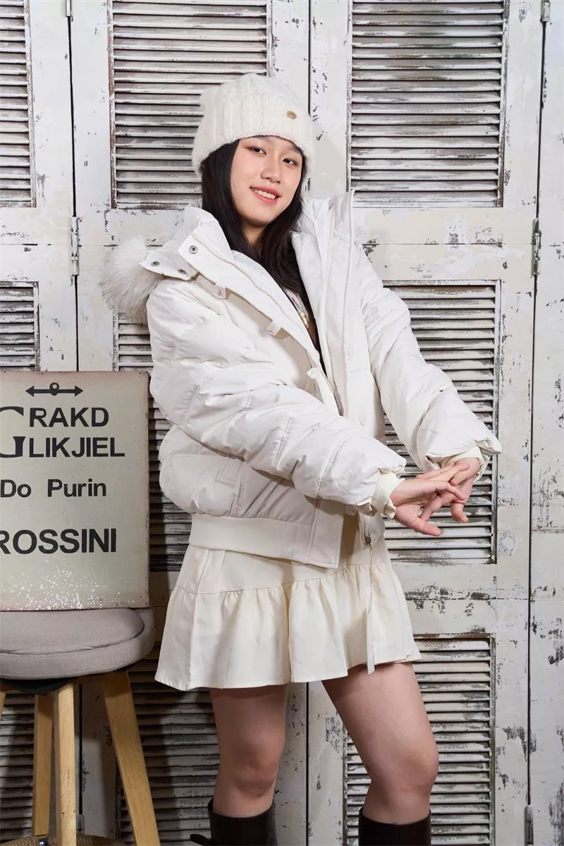 Giubbotto Corto Beige Con Cappuccio Bordato In Pelliccia Morbido CF57093