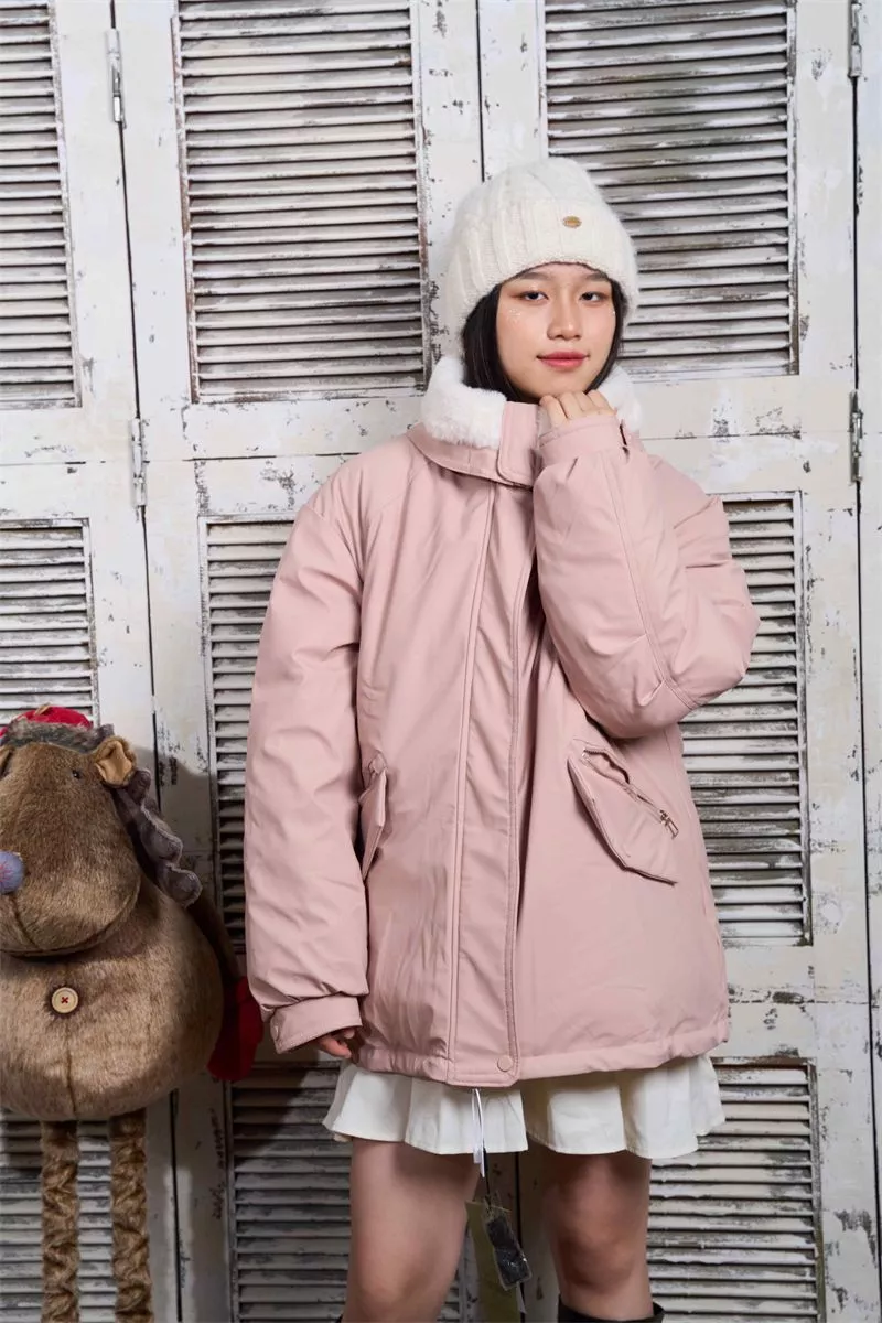 Giubbotto Rosa Trapuntato Con Collo In Pelliccia Morbida Caldo Invernale CF57092