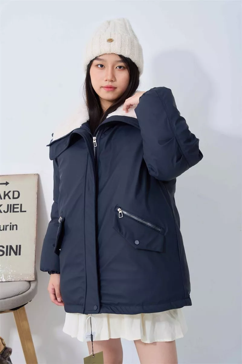 Piumino Blu Marino Con Collo In Pelliccia Morbida Caldo E Leggero CF57092