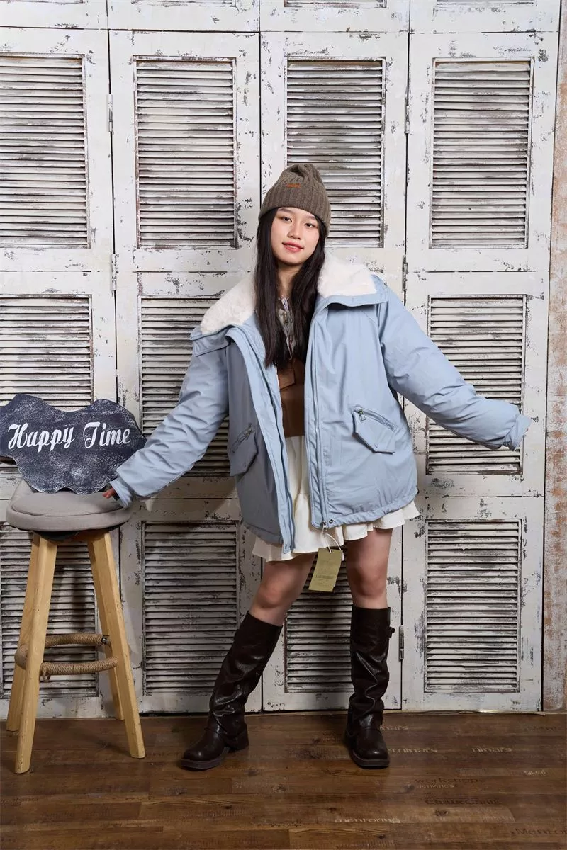Giubbotto Azzurro Trapuntato Con Collo Pelliccia Morbida Elegante CF57092