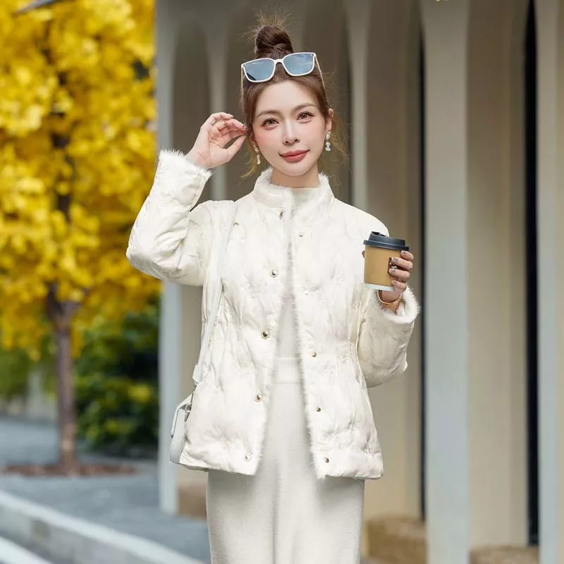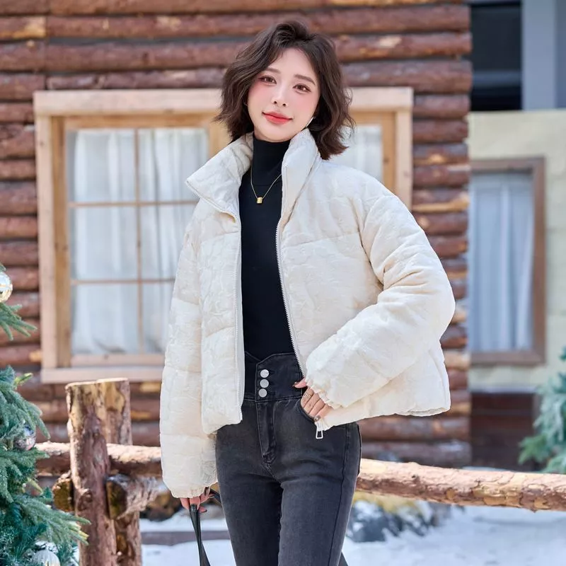 Giacca Corta Donna Bianca Imbottita Con Collo Alto E Zip Invernale CF61652