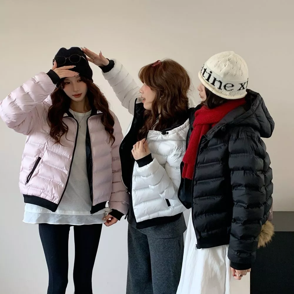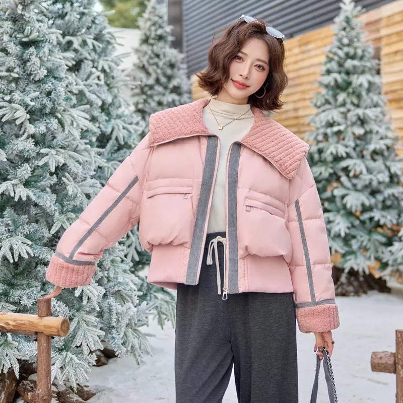 Giacca Corta Donna Rosa Imbottita Con Collo Ampio A Contrasto E Zip CF61650