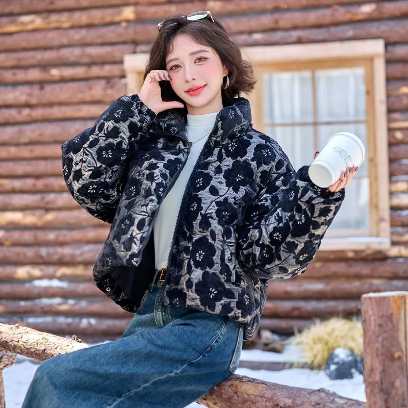 Giacca Corta Donna Nera Imbottita Con Collo Alto E Zip Invernale CF61652