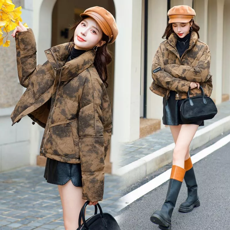 Giacca Imbottita Donna Marrone Marmorizzato Over Con Zip Frontale CF61860