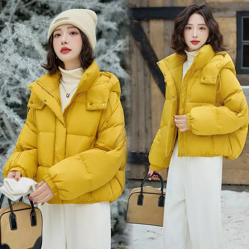 Giacca Donna Imbottita Corta Cappuccio E Zip Termica Invernale Giallo CF65435