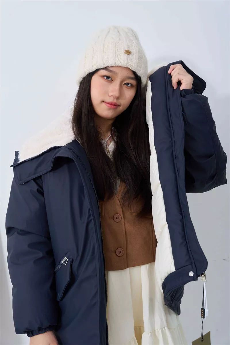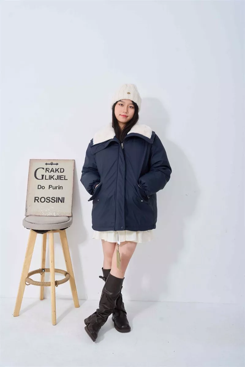 Un capo dal fascino moderno e raffinato: questo giubbotto corto imbottito con collo in pelliccia morbida unisce calore e femminilità in un design pratico e chic.