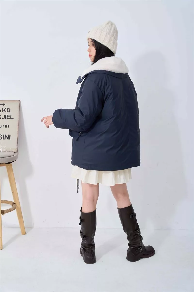 Piumino Blu Marino Con Collo In Pelliccia Morbida Caldo E Leggero CF57092
