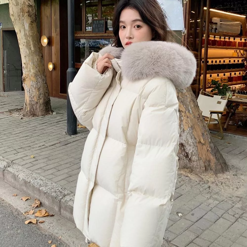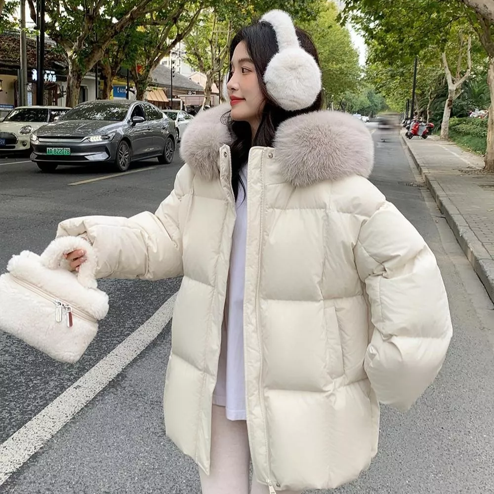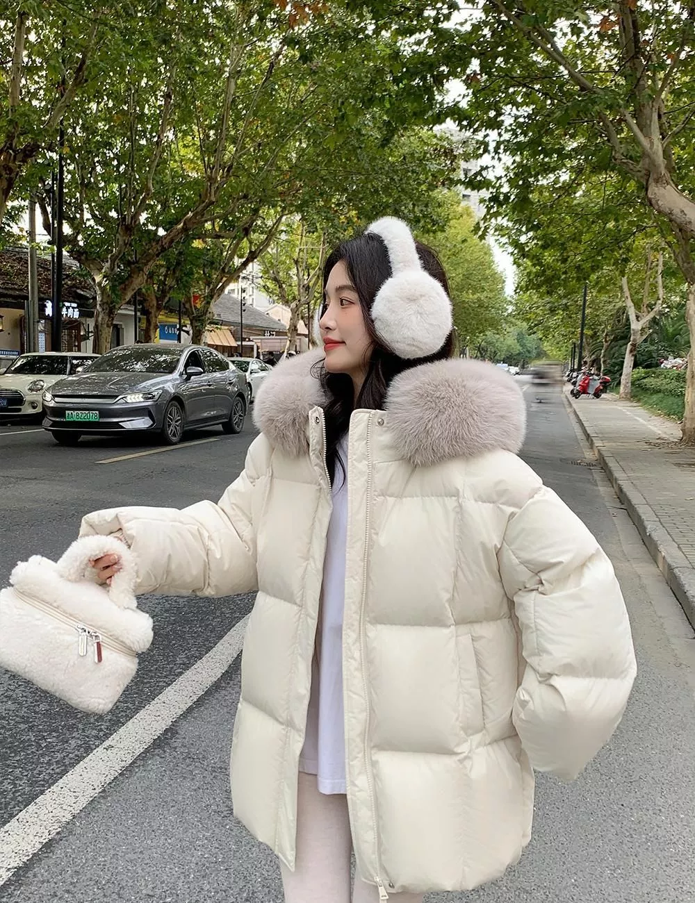 Piumino Corto Bianco Con Collo In Pelliccia Sintetica Elegante CF55644