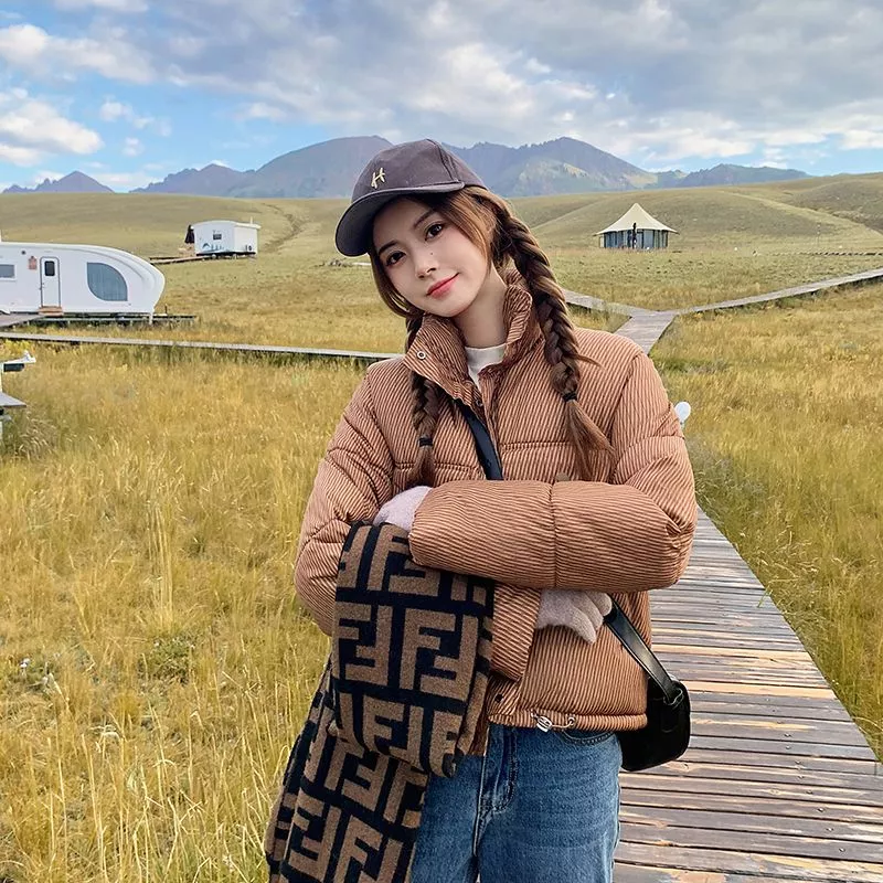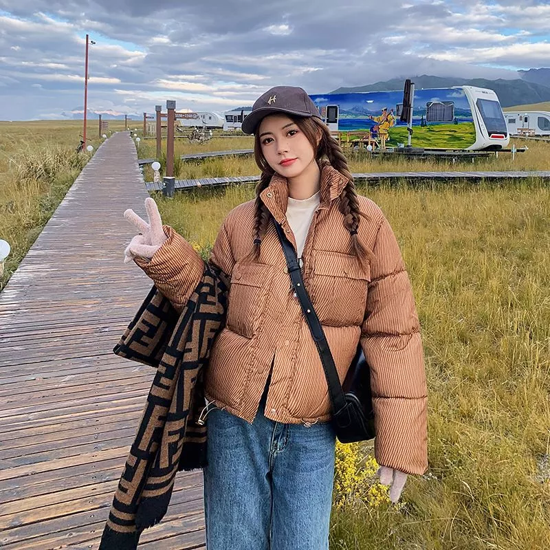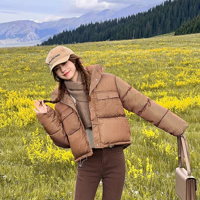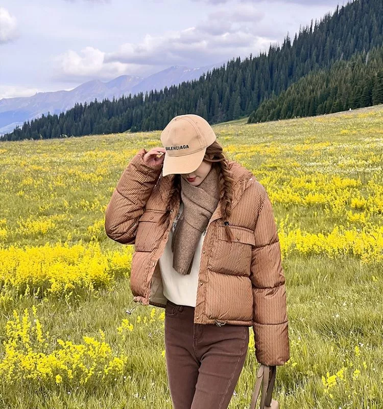 Piumino corto trapuntato da donna in tessuto sintetico resistente, con imbottitura calda e voluminosa che assicura massimo comfort nelle giornate fredde. Il design moderno con collo alto imbottito, bottoni a pressione e tasche frontali applicate lo rende un capo pratico e funzionale. La fantasia a righe sottili tono su tono aggiunge un tocco originale senza rinunciare alla versatilità: perfetto con jeans, pantaloni slim o look casual quotidiani. Un capo ideale per affrontare l’inverno con stile e comodità.