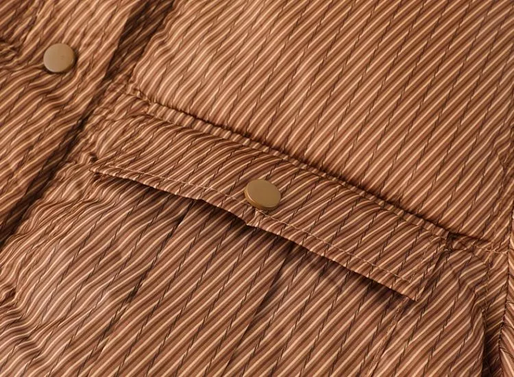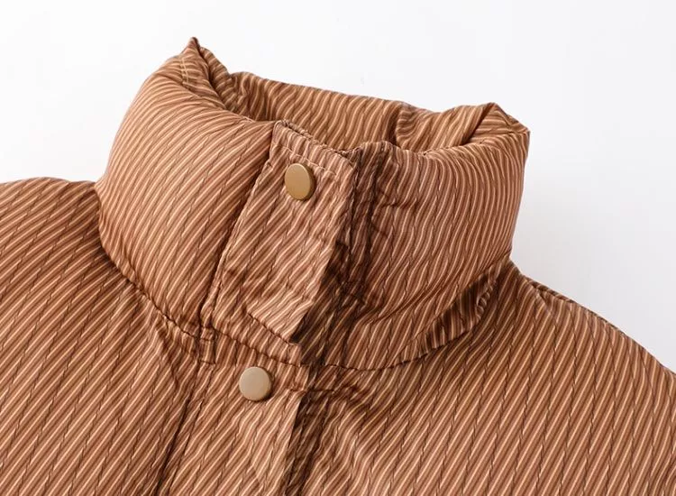 Piumino Corto Trapuntato Donna Colore Cachi A Righe Invernale Casual CF52649