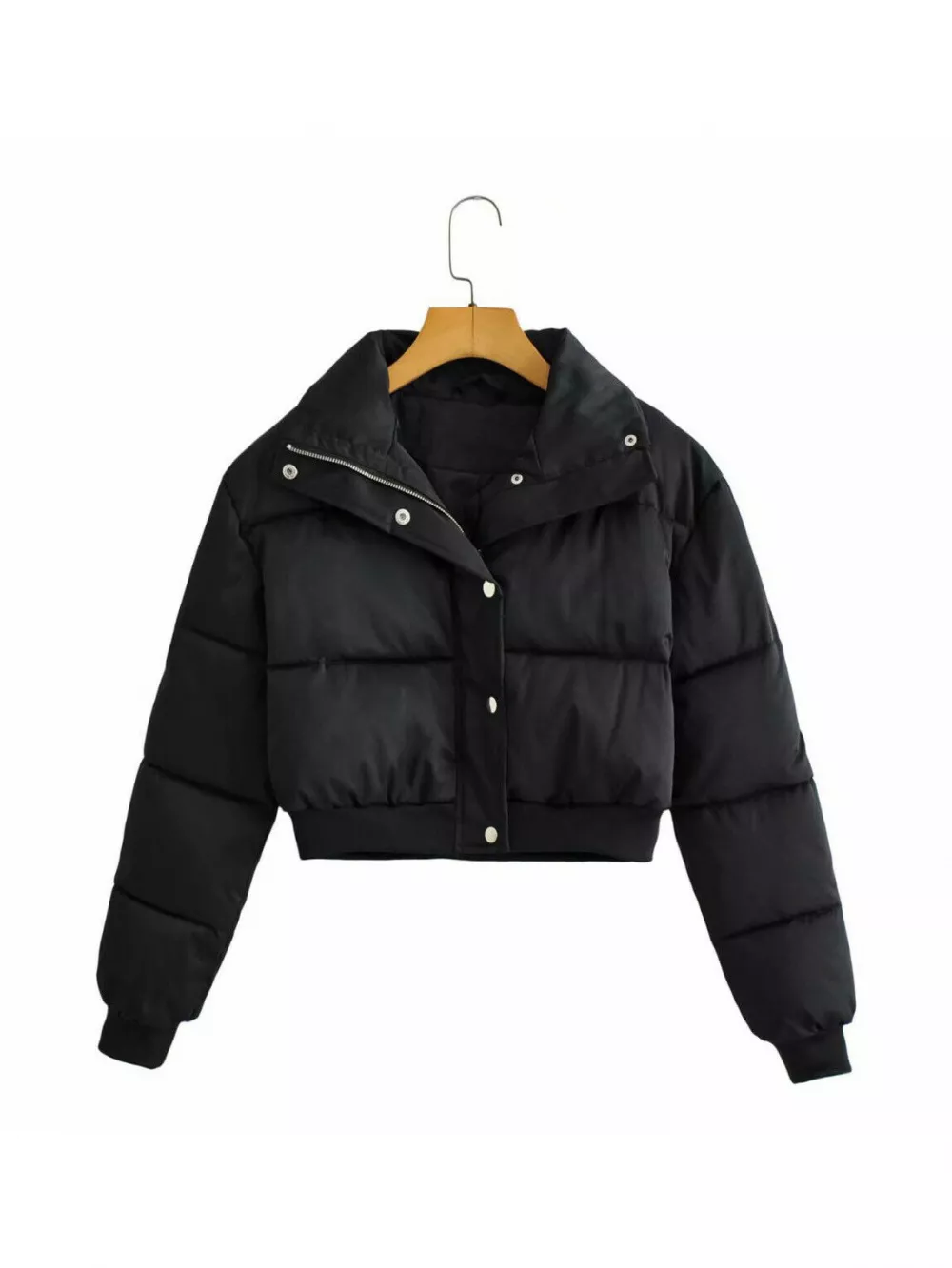 Piumino donna bomber cappotto giubbino giacca nero imbottito corto P000