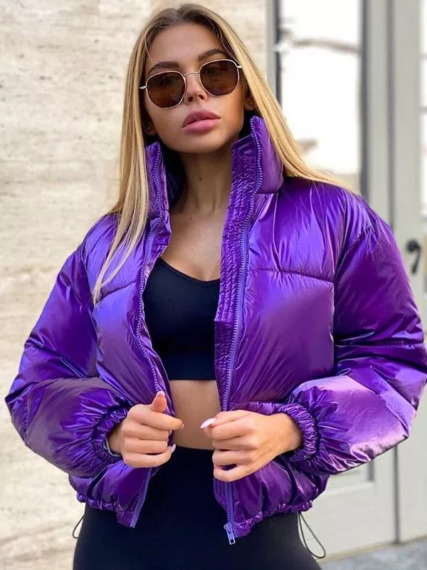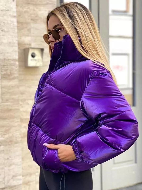 Piumino sintetico giacca donna viola corto over morbido caldo P050