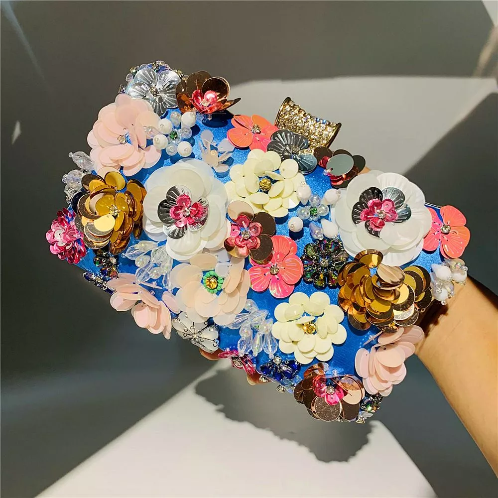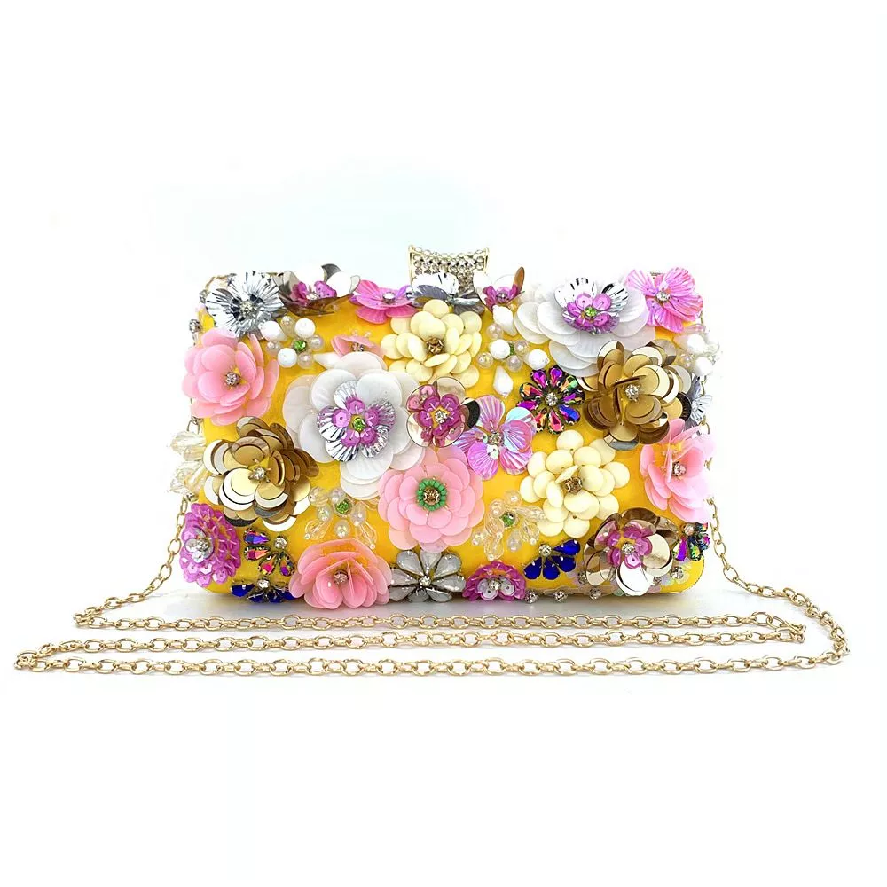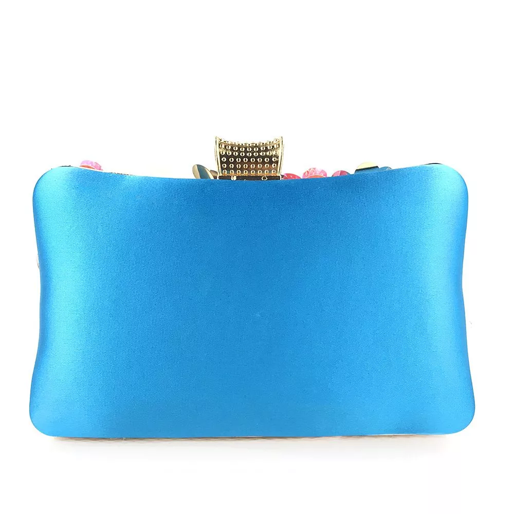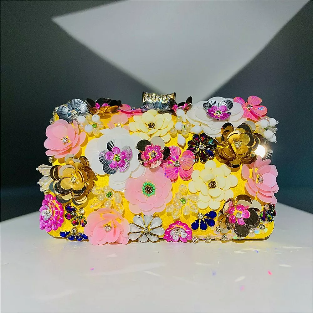 Una pochette che diventa protagonista del look: questa borsa rigida è impreziosita da fiori applicati e perline colorate che creano un effetto luminoso e sofisticato. Perfetta per cerimonie, matrimoni ed eventi serali, aggiunge un tocco raffinato e scenografico a ogni outfit. Compatta ma capiente, è ideale per custodire telefono e piccoli oggetti indispensabili, mantenendo sempre uno stile glamour.