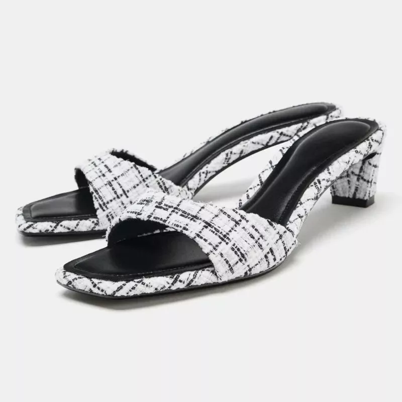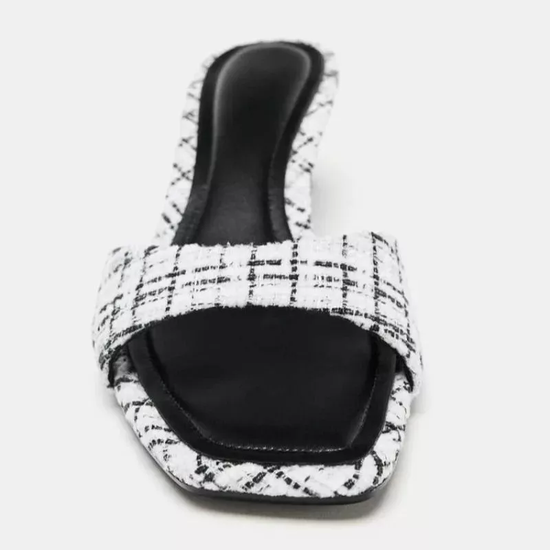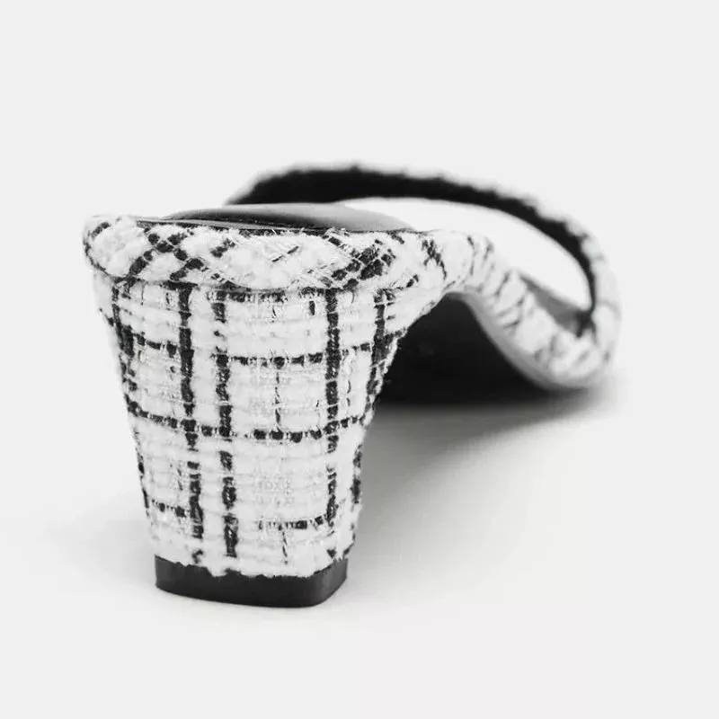 Sabot Donna Tacco 5 cm Tessuto Tweed Punta Aperta Mule Eleganti CF53840