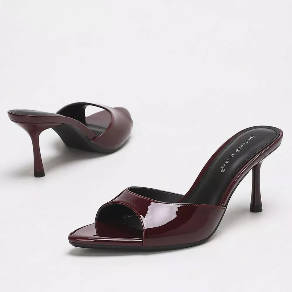 Sabot Eleganti Borgogna Lucido Tacco 9 Cm Scarpe Mule Donna Sera Eleganti K7P4L2