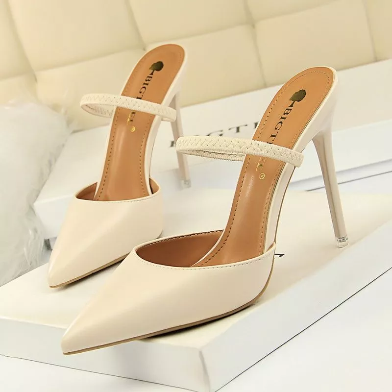 Mules Beige Con Tacco 10,5 Cm E Linea Raffinata Comode CF55548