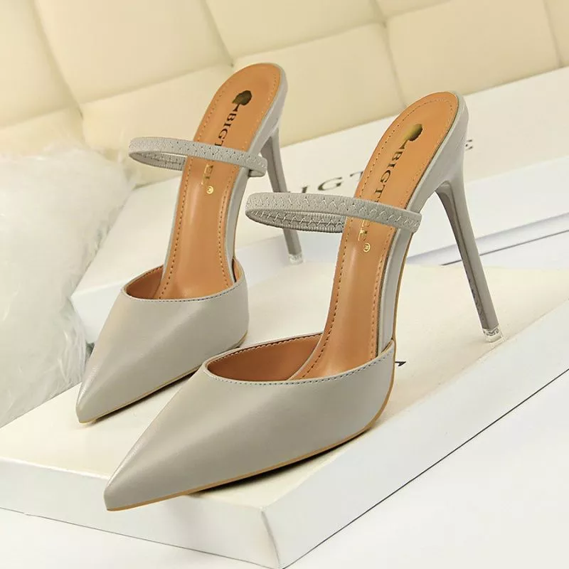 Mules Grigie Con Tacco 10,5 Cm E Design Minimal Chic CF55548