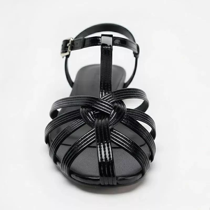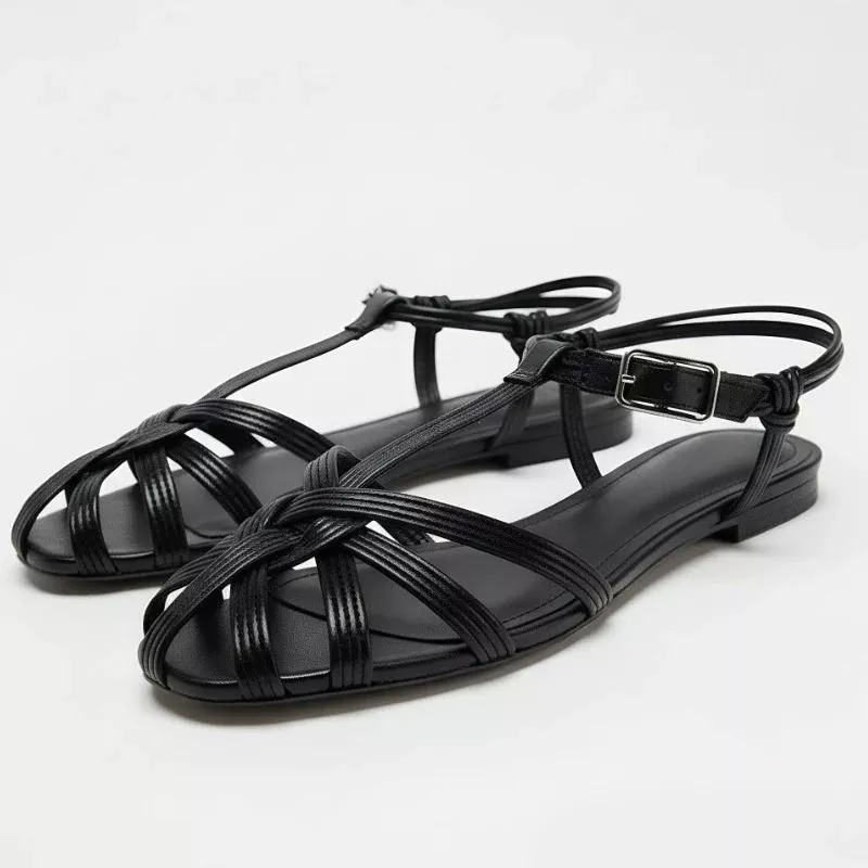 Sandali bassi dal design elegante e versatile, ideali per la stagione estiva. Le fasce sottili intrecciate avvolgono il piede in modo armonioso, creando una struttura leggera ma stabile che valorizza la linea del piede senza appesantirla.