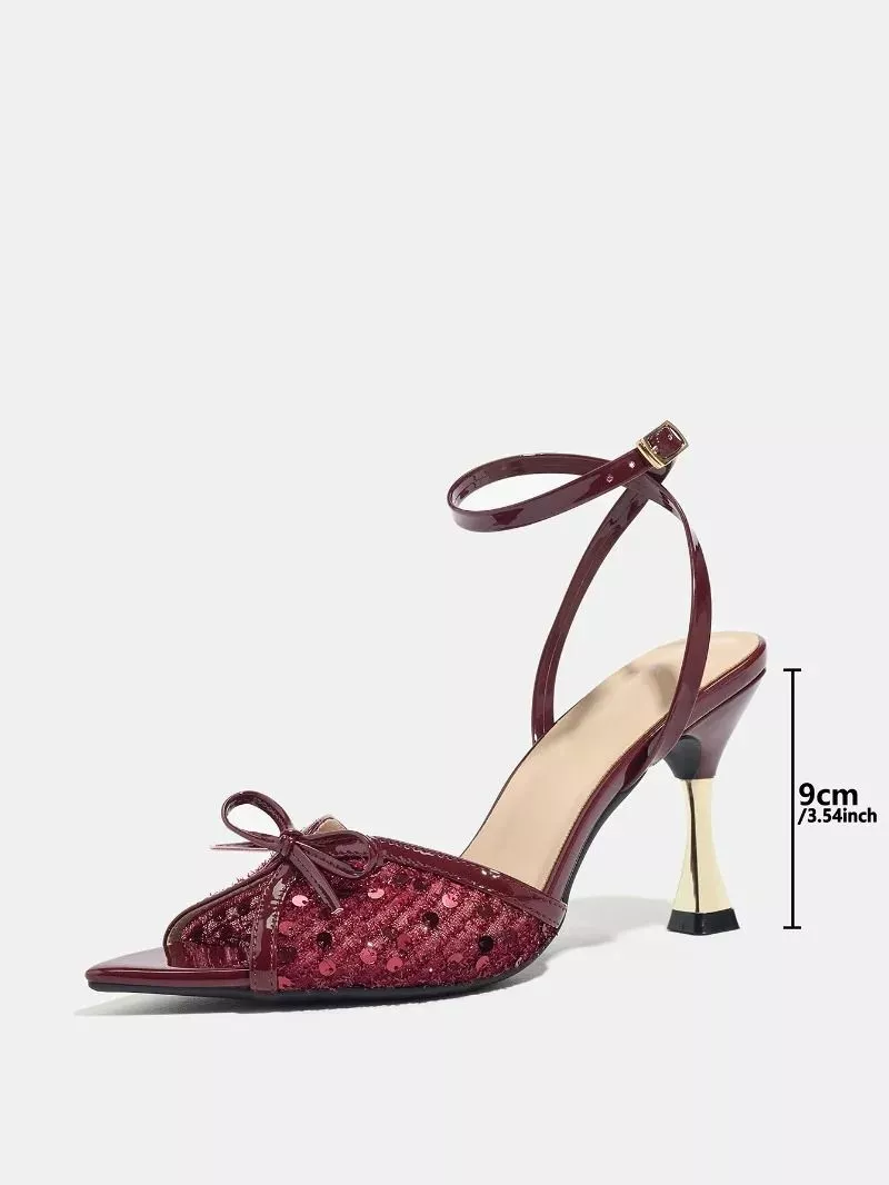 Sandali Bordeaux Tacco 9 cm Glitter Cinturino Caviglia Eleganti Donna CF53838