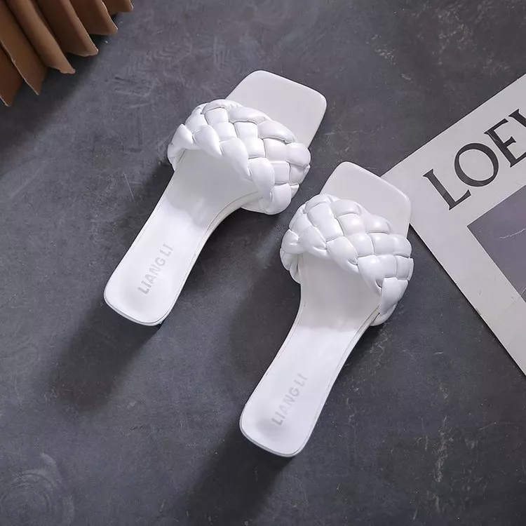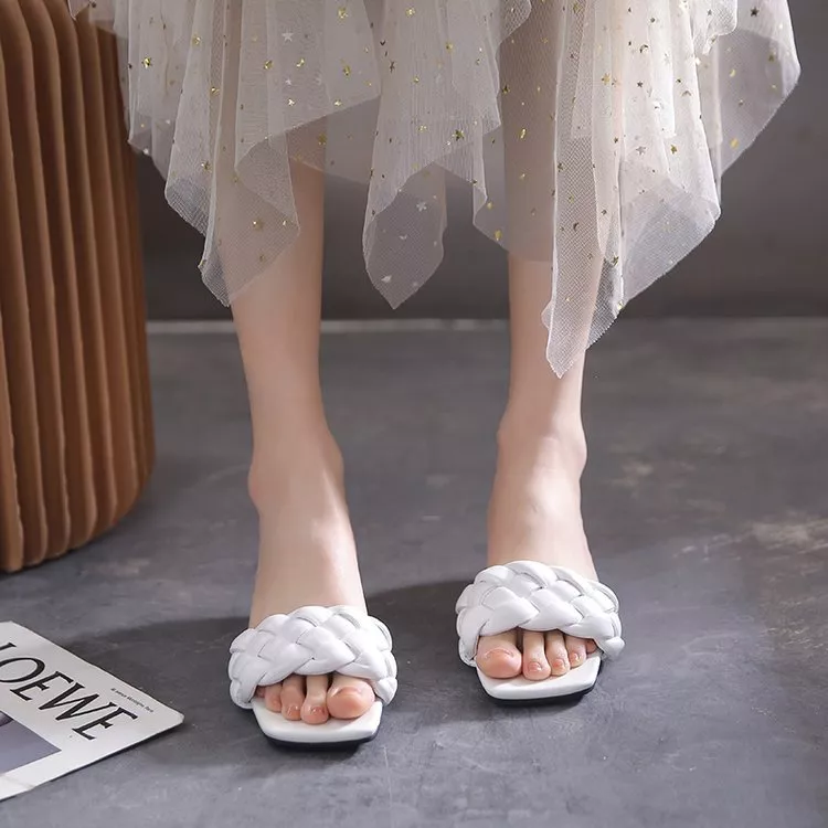 sandali ciabatte sabot bassi bianco tacco basso intrecciato pelle sintetica 7987